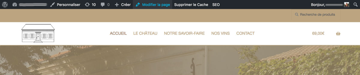 Retournez sur votre site en visitant le lien en haut à gauche sous le nom de votre site : "Aller sur le site"